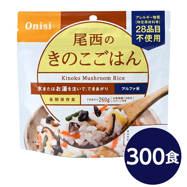 尾西食品 アルファ米 保存食 きのこごはん 100g 300個セット 日本災害食認証 非常食 企業備蓄 防災用品 アウトドア 代引不可