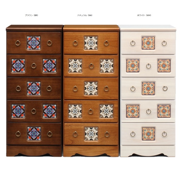キリム調の柄タイルで飾った、アンティークテイストのチェスト。サイズと高さとカラーで色んな組み合わせが自由に選べます。