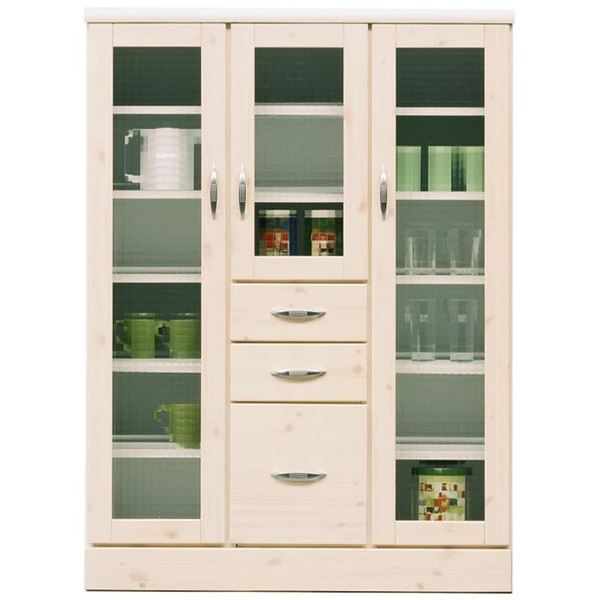 パイン材を使用したカントリー調ロータイプ食器棚。高さ120cmでレンジ台との組合わせもおすすめ。