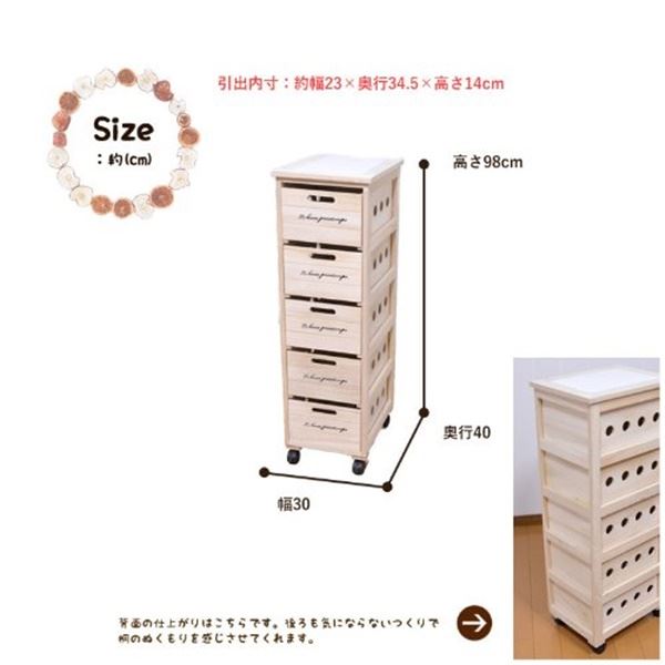 キッチン収納 5段 キャスター付き 木製 桐 通気性抜群 タイル キッチン便利ストッカー 完成品 台所 リビング