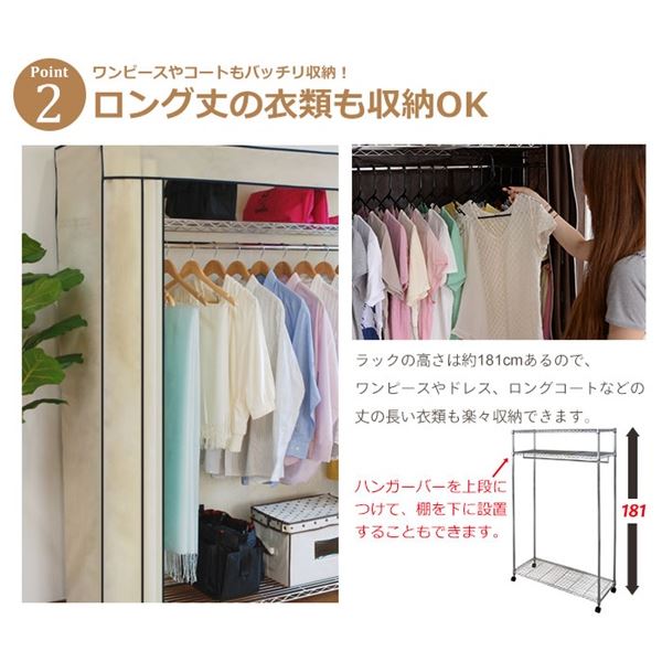 不織布のカバー付で、ホコリから大切な衣類を守ります。