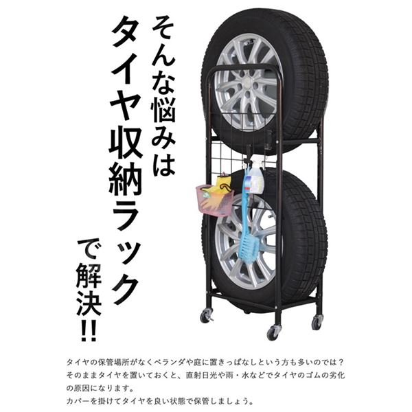 タイヤラック カー用品 薄型 2台分セット 専用カバー付き キャスター付き スチール 組立品 ガレージ 自動車 クルマ