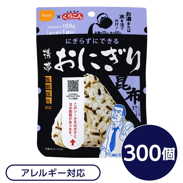 尾西食品 携帯おにぎり 保存食 こんぶ 300個 長期保存 軽量 国産米100% 非常食 企業備蓄 防災用品 避難用具 防災食 代引不可
