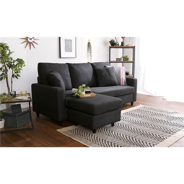 カウチソファー 約幅176cm クッション 取り外し式木製脚付き リビング ダイニング 組立品 代引不可