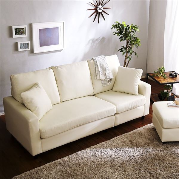 カウチソファー 約幅176cm クッション 取り外し式木製脚付き 合革 リビング ダイニング 組立品 代引不可