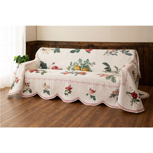 ソファーカバー ラグマット フォリア バラ柄 洗える ルドゥーテ キルトカバー リビング ソファ ベッドルーム