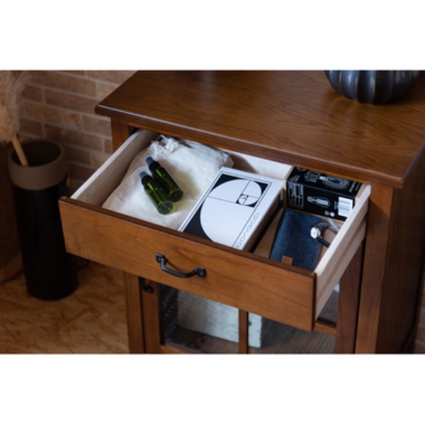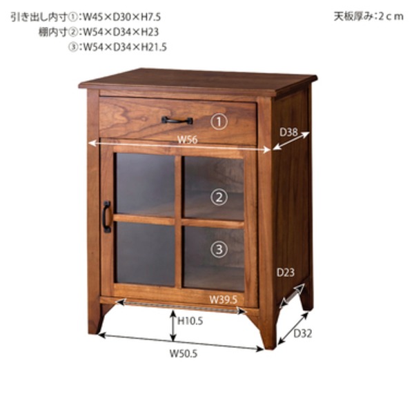 収納棚 リビング収納 木製 引き出し 脚付き 強化ガラス ティンバー ミニキャビネット 完成品 リビング ダイニング