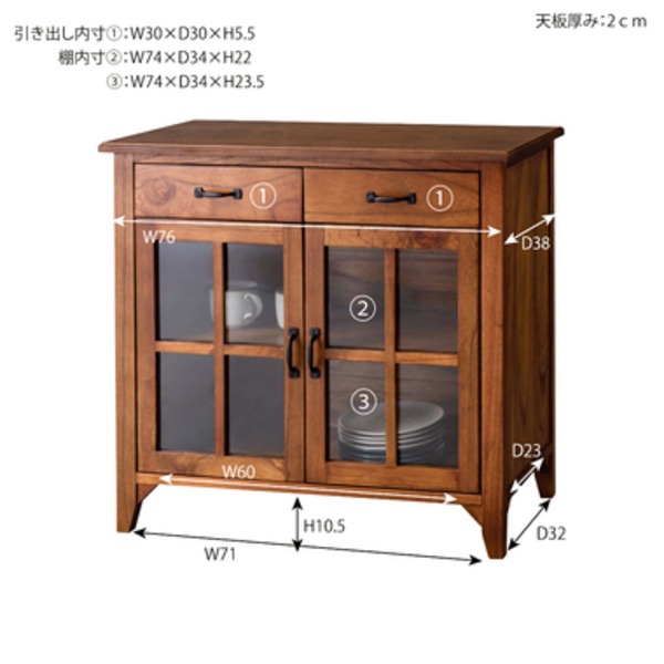 キャビネット 収納棚 幅80cm P-319 木製 脚付き 強化ガラス ティンバー 完成品 リビング ダイニング インテリア家具