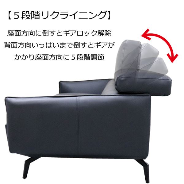 ソファー 約幅191cm 背もたれ可動式 合皮 張地 肘付き スチール脚 脚部組立品 リビング ダイニング 代引不可