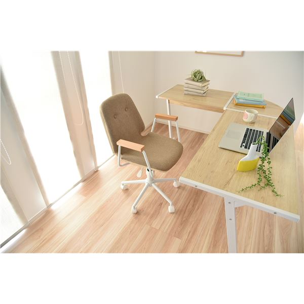 デスクチェア オフィスチェア ファブリック 木製 スチール脚 肘付き キャスター付 WH 組立品 代引不可