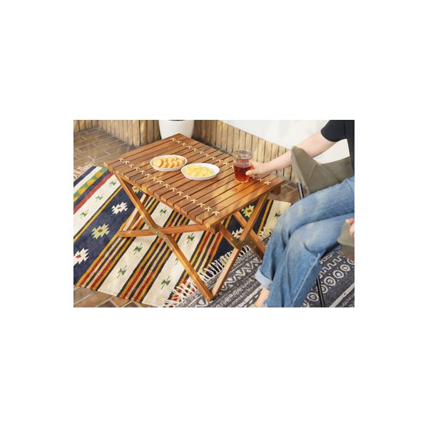 小さく収納・持ち運びができるだけでなく、チーク材と本革の風合いはインテリアとしても活躍します。