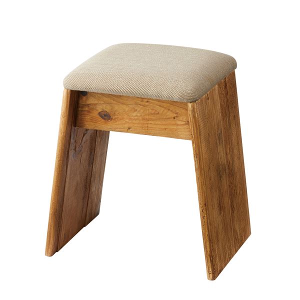 軽量でシンプルなスツール。ひとつひとつ表情の異なるパイン古材の質感とファブリックの組み合わせが上質な空間を演出します。