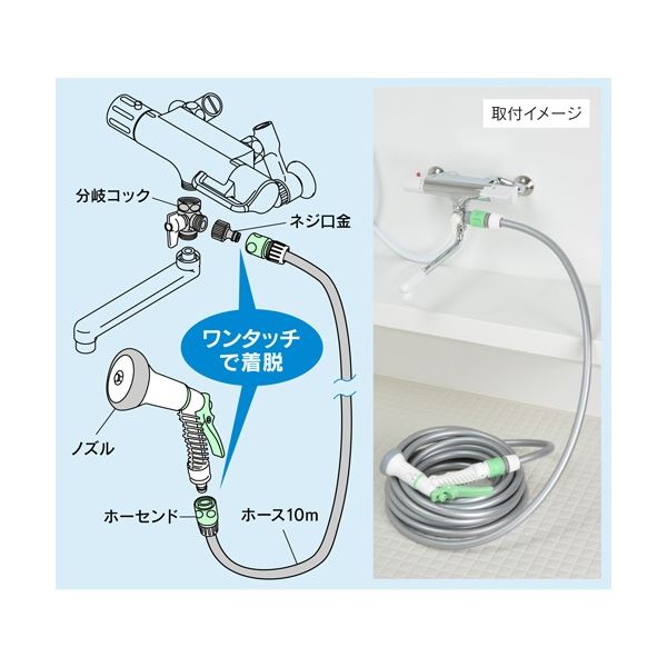 ●お風呂の混合栓などのパイプ根元から分岐します。ホースの長さは10mです。