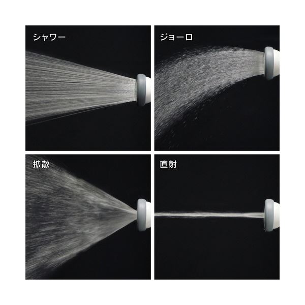 ●ノズルは、シャワー・ジョーロ・拡散・直射の4種類の水流に切替ができます。