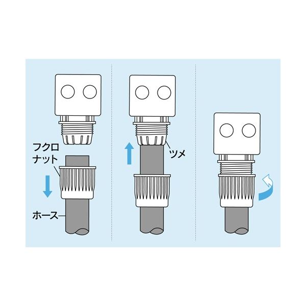 ●ホーセンドを使うと、ネジ口金や万能口金にワンタッチで接続ができます。