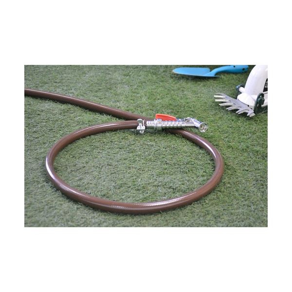 ●耐候性に優れ、屋外の使用に適している、4mの散水用ホース。色はブラウンです。
