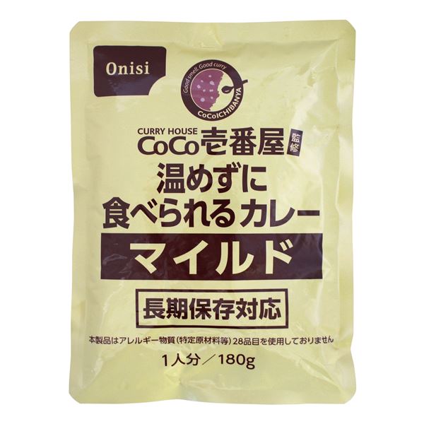 アルファ米は国産のうるち米だけを使用しています。お米が立ってるふっくらご飯をお楽しみください。お湯で15分、水で60分でふんわりご飯ができあがり。レトルトカレーはCoCo壱番屋が監修した辛さ控えめの野菜カレーとなっており、温めなくてもそのまま食べられます。アレルギー物質(特定原材料等)28品目不使用。スプーン付きで、アルファ米の袋を食器代わりにして食べられるので、何処でもお召し上がりいただけます。