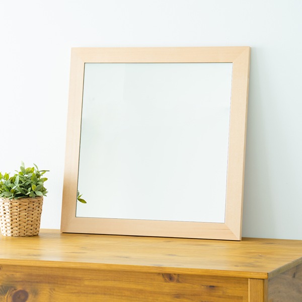 幅広枠正方形ウォールミラー(60×60cm)(ナチュラル)【2枚セット】