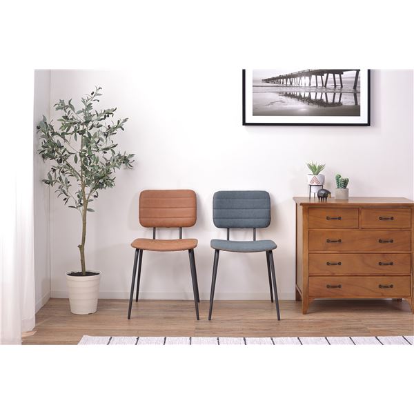 スチールフレームとレザーの組み合わせが、インダストリアルやヴィンテージなど様々なテイストに合うシンプルなチェア。ダイニングやデスクにもあわせやすいコンパクトな設計です。