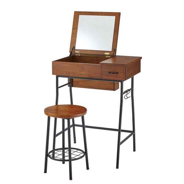 ドレッサー セット 約幅60cm S字フック2個付き 木製 スチール 5mm飛散防止ミラー 組立品 ベッドルーム