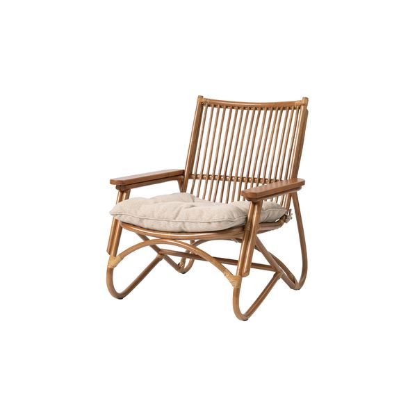 脚のカーブが美しい、天然木×ラタンのパーソナルチェア。ゆったりと座りやすい形状と、印象的なデザインが特徴です。