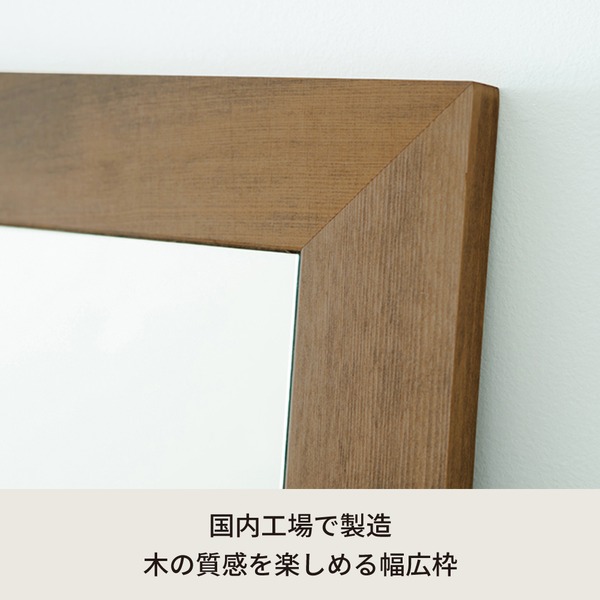幅広枠ウォールミラー()(/茶) 天然木 姿見鏡 ワイド 高級感 木製 飛散防止加工 壁掛け 北欧風 ヴィンテージ 韓国インテリア 玄関 トイレ 洗面 日本製 完成品 NK-33