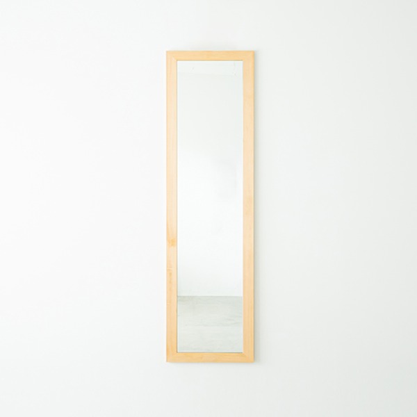 幅広の木枠フレームが印象的でスタイリッシュな姿見タイプ。