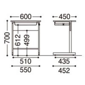 ●材質:天板・幕板=低圧メラミン樹脂化粧木質ボード、芯材=パーティクルボード、エッジ=PVC、棚=スチール、脚部=スチール(粉体塗装)