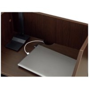 プレゼン、セミナー、説明会などに欠かせない講演台。/ダークタイプ。2色展開で空間の雰囲気に合わせてお選びいただけます。上段には配線穴付です。