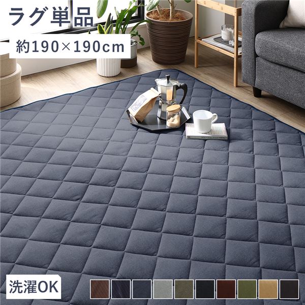 こたつ敷布団 キルト ラグ マット 正方形 デニム生地 ネイビー 洗える 綿100% 床暖房可 防滑 代引不可