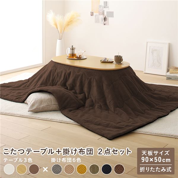 こたつ 2点セット ナチュラル 楕円形 折りたたみ こたつテーブル こたつ掛け布団 完成品 代引不可