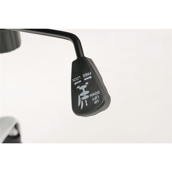 通気性の良いメッシュ生地を使用したオフィスチェア。肘にはクッションが付いた跳ね上げ式。