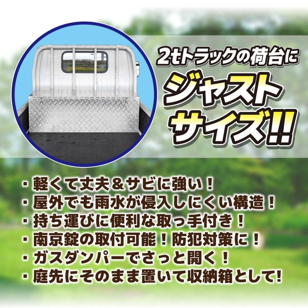 作業用軽トラックの荷台、軒先や庭の工具入れなど、幅広くご使用いただける収納BOXです。