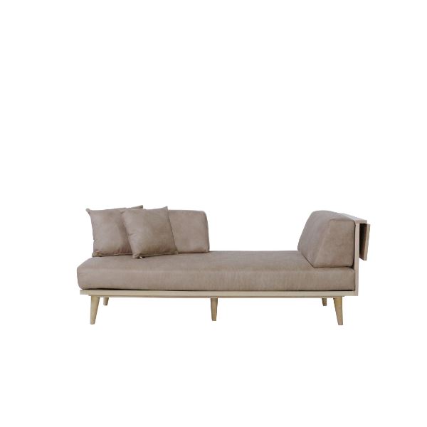 背板の木部にはテーブル機能をつけました。ちょっとした作業スペースが完備できます。ライフスタイルに合わせて組み替え自由。ハイテクレザーで引っ掻きに強く洗える生地でいつでも清潔です。デイベッド風ソファです。