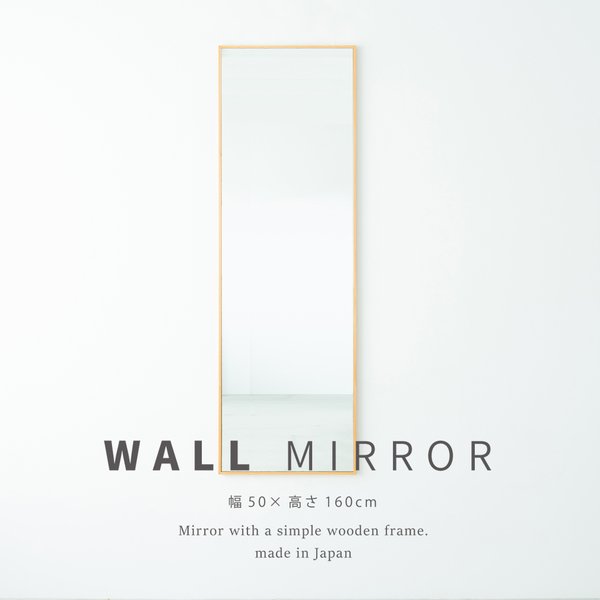 細枠ウォールミラー(50×160) (ナチュラル)