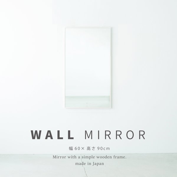 2個セット 細枠ウォールミラー()(/白) 天然木 姿見鏡 ワイド 高級感 木製 飛散防止加工 壁掛け 北欧風 玄関 トイレ 洗面 日本製 完成品 業務用 NK-26