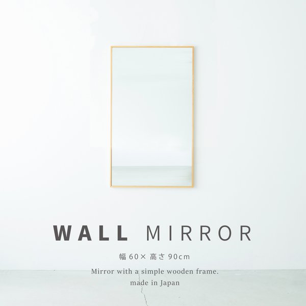 細枠ウォールミラー(60×90) (ナチュラル)【2個セット】