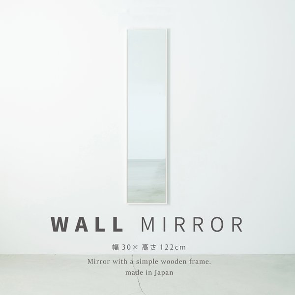細枠ウォールミラー()(/白) 天然木 姿見鏡 スリム 高級感 木製 飛散防止加工 壁掛け 北欧風 玄関 トイレ 洗面 日本製 完成品 NK-40
