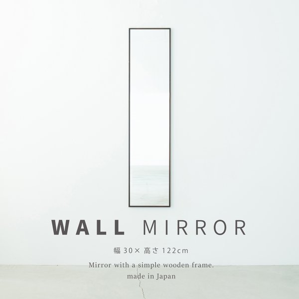 細枠ウォールミラー()(/茶) 天然木 姿見鏡 スリム 高級感 木製 飛散防止加工 壁掛け 北欧風 玄関 トイレ 洗面 日本製 完成品 NK-40