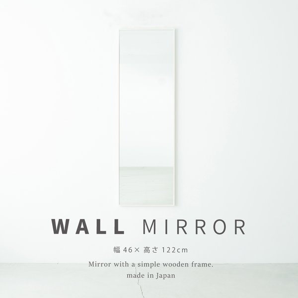 細枠ウォールミラー()(/白) 天然木 姿見鏡 スリム 高級感 木製 飛散防止加工 壁掛け 北欧風 玄関 トイレ 洗面 日本製 完成品 NK-41
