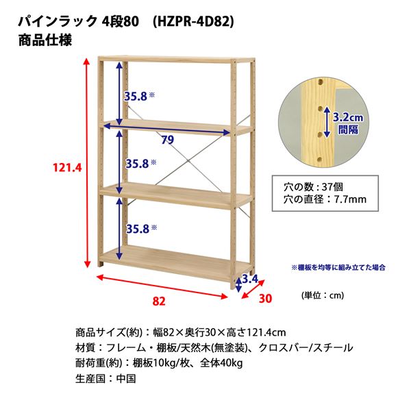 【商品名】パインラック4段80