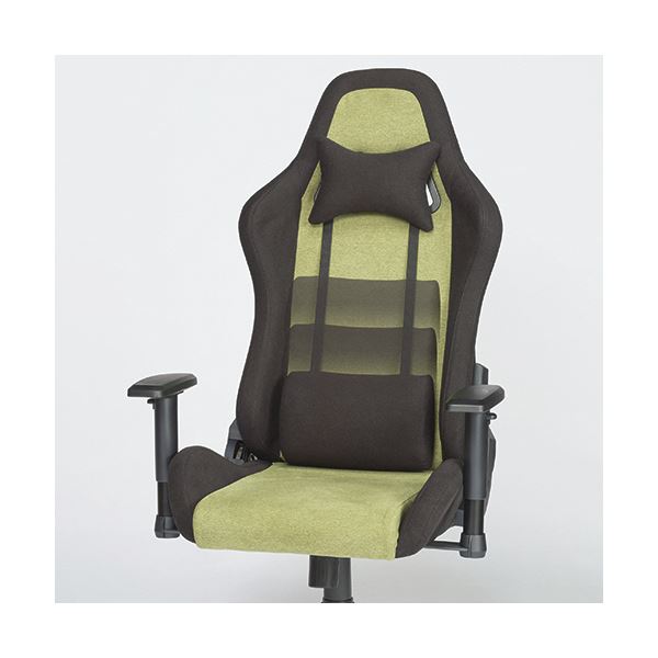 ●取り外しできるヘッドレストランバーサポート付きのゲーミングチェア。色はグリーンです。