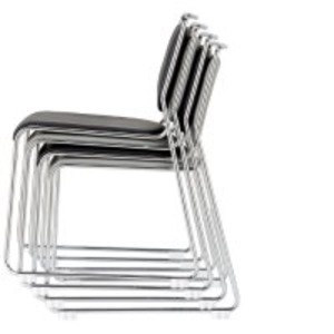 耐アルコール機能付のPVCレザー張のスタッキングチェア。平積みでも8脚までスタッキング可能。