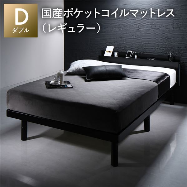 ベッド 国産ポケットコイルマットレス付 レギュラー 宮付き 高さ調整 すのこ ベット