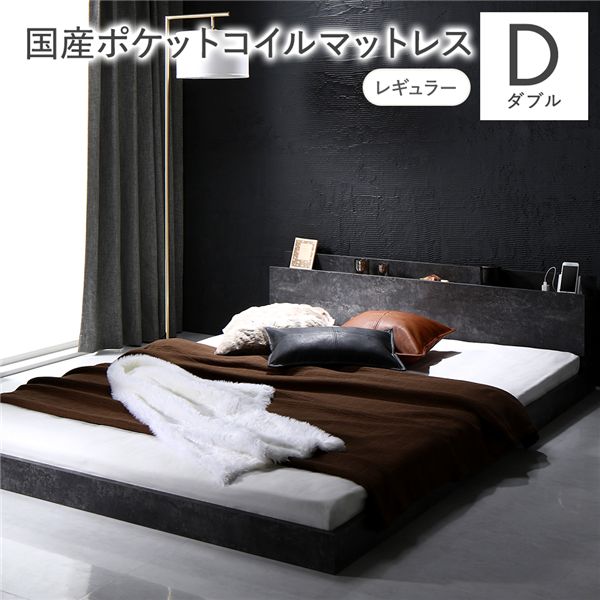 ベッド 国産ポケットコイルマットレス付 レギュラー ストーン 低床 すのこ コンセント 宮付 ローベッド