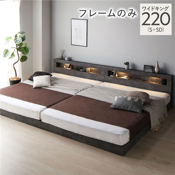 ベッド 220 S+SD ベッドフレームのみ ストーン 連結 低床 照明 宮付 すのこ