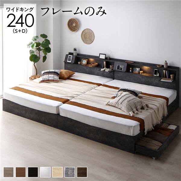ベッド 240 S+D ベッドフレームのみ ストーン 2台セット 連結 収納 コンセント 宮付