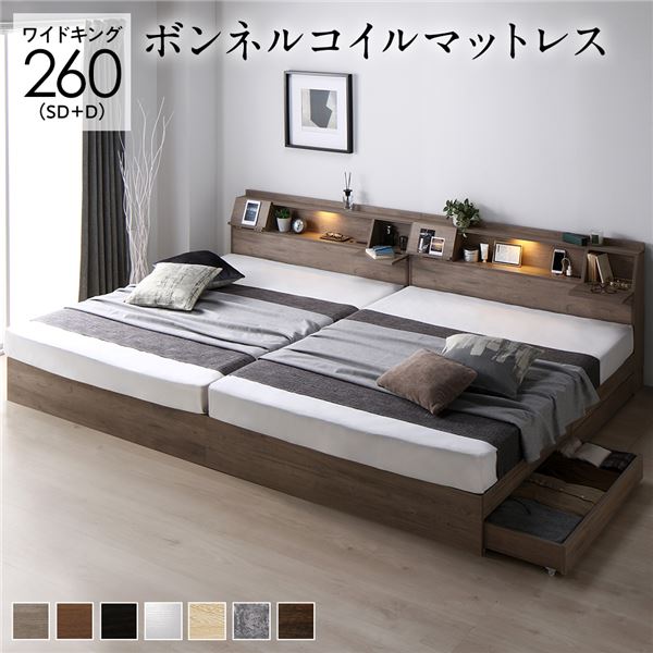 ベッド 260 SD+D ボンネルコイルマットレス付 2台セット 連結 収納 コンセント 宮付