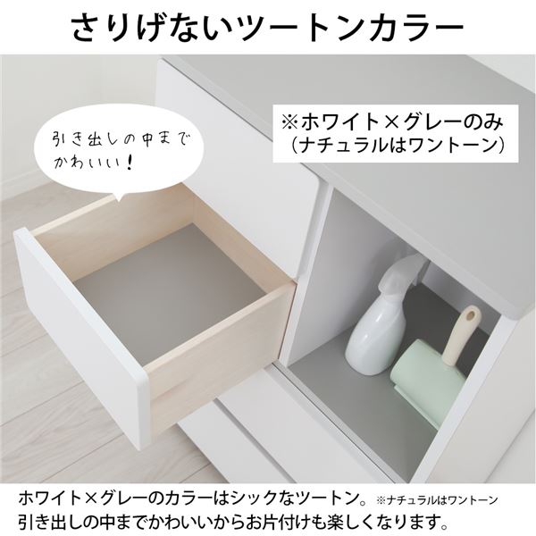 ホワイト×グレーは見た目もかわいいツートンカラー。収納の中までかわいいからお片付けも楽しくなります。※ナチュラルはワンカラーです。