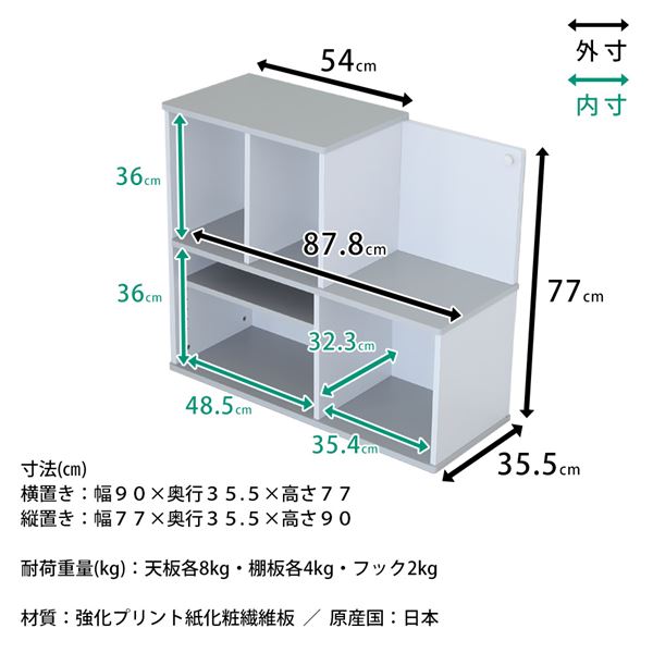 横置き:幅90cm×奥行35.5cm×高さ77cm